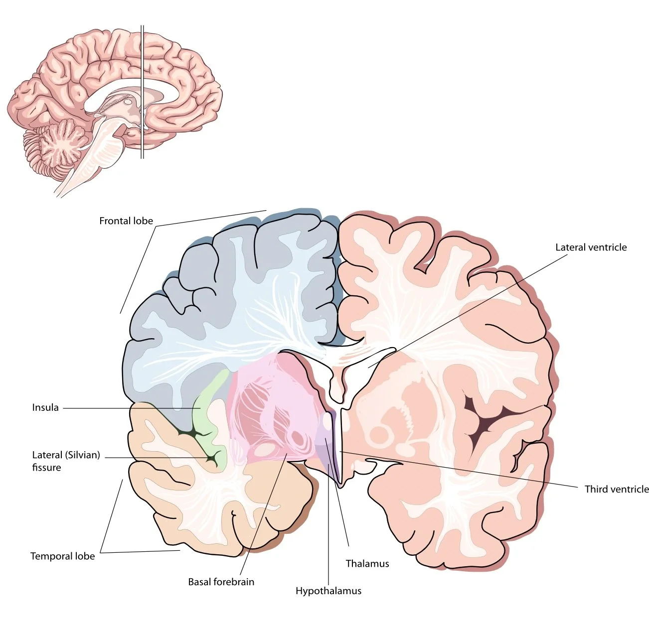This is another view showing the insula deep hidden behind the temporal and frontal lobes.