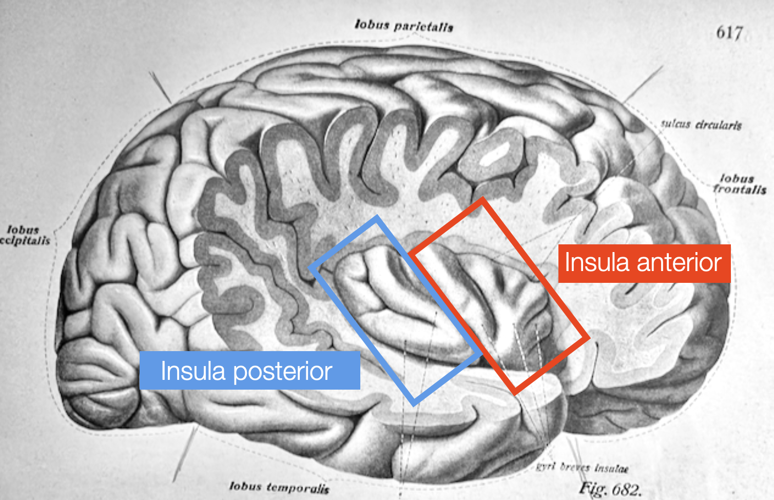Anatomical view of the insula, after partial removing of temporal and frontal lobes. Adapted from (Sobotta, 1922)(@absb, 2024).