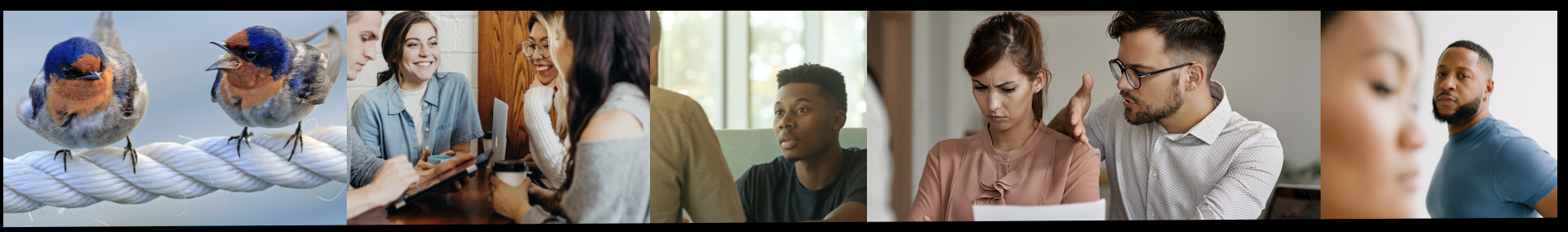 The first row shows socially engaged—some happy, others not.