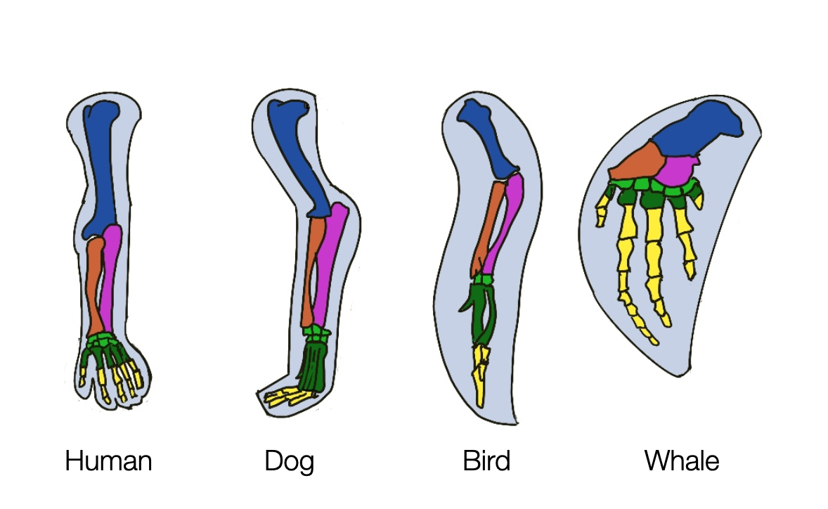 We speak of homology when two species descended from a common evolutionary ancestor show similarity in structure, physiology, or development. The limbs of humans, cats, whales, and bats are excellent examples of homology. Whether it is an arm, a leg, a fin, or a wing, these structures are based on the same bone structure.