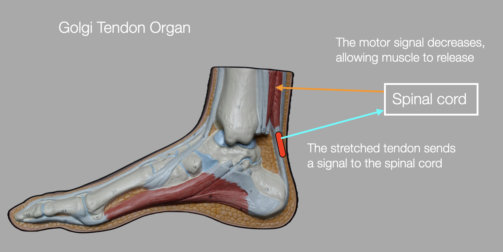 2. Release: When you stretch a muscle, you may initially feel an uncomfortable pull. After a few seconds, however, the muscle adapts. This adaptation is facilitated by the Golgi tendon organ, which sends a signal to the spinal cord. In response, the spinal cord inhibits the motor signal to the muscle, resulting in less muscle contraction and a feeling of relief.