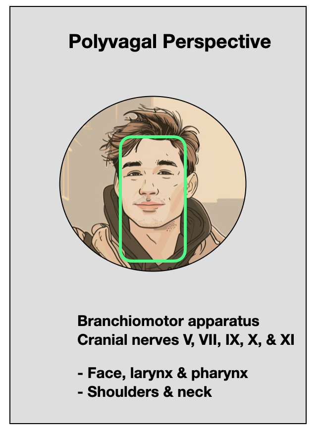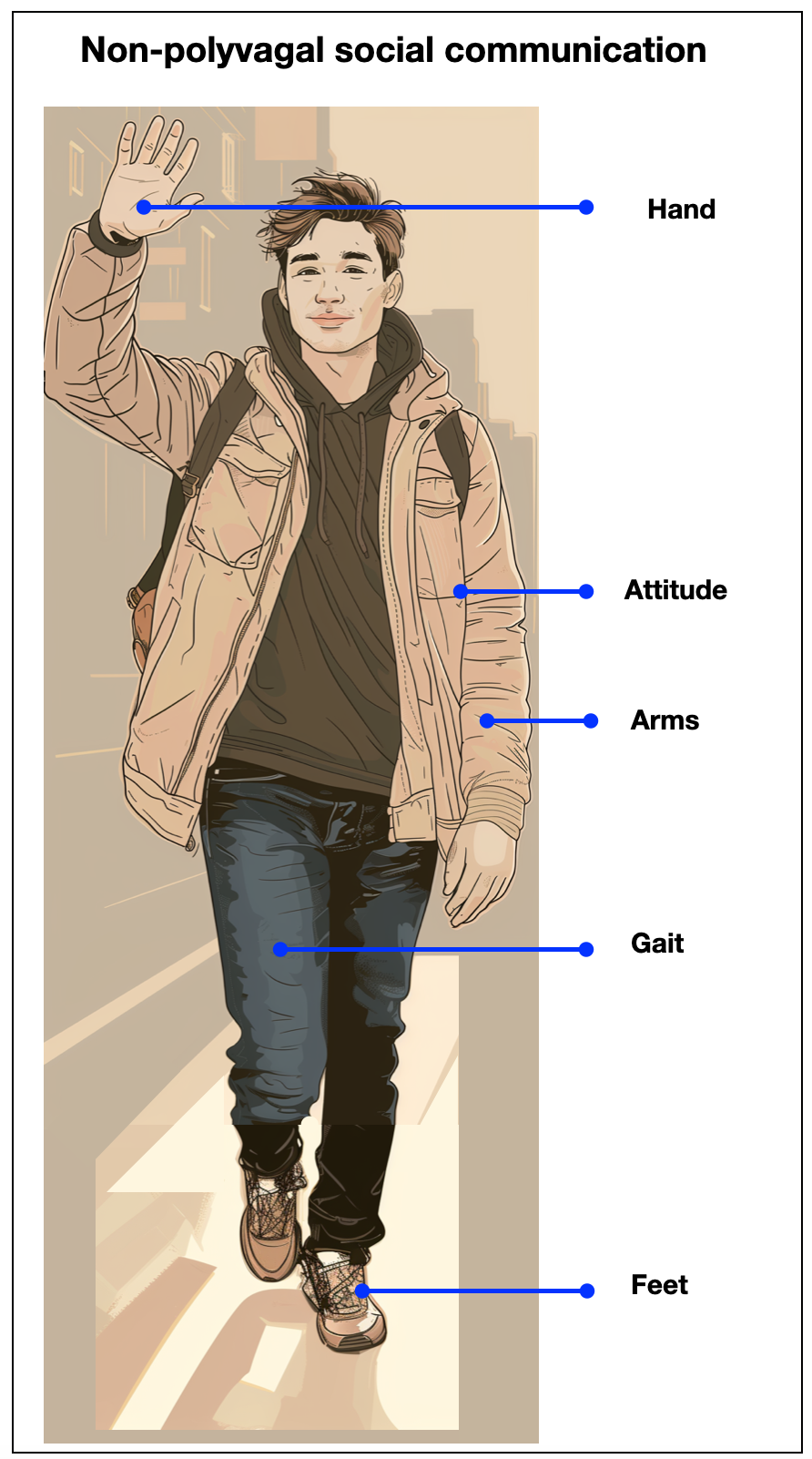 The PVT sees the motor cranial nerves (V, VII, IX, X, and XI) as the social hardware of social communication. Although the face, vocalization, and head rotation are important parts of communication, many other body parts are missing from this description.