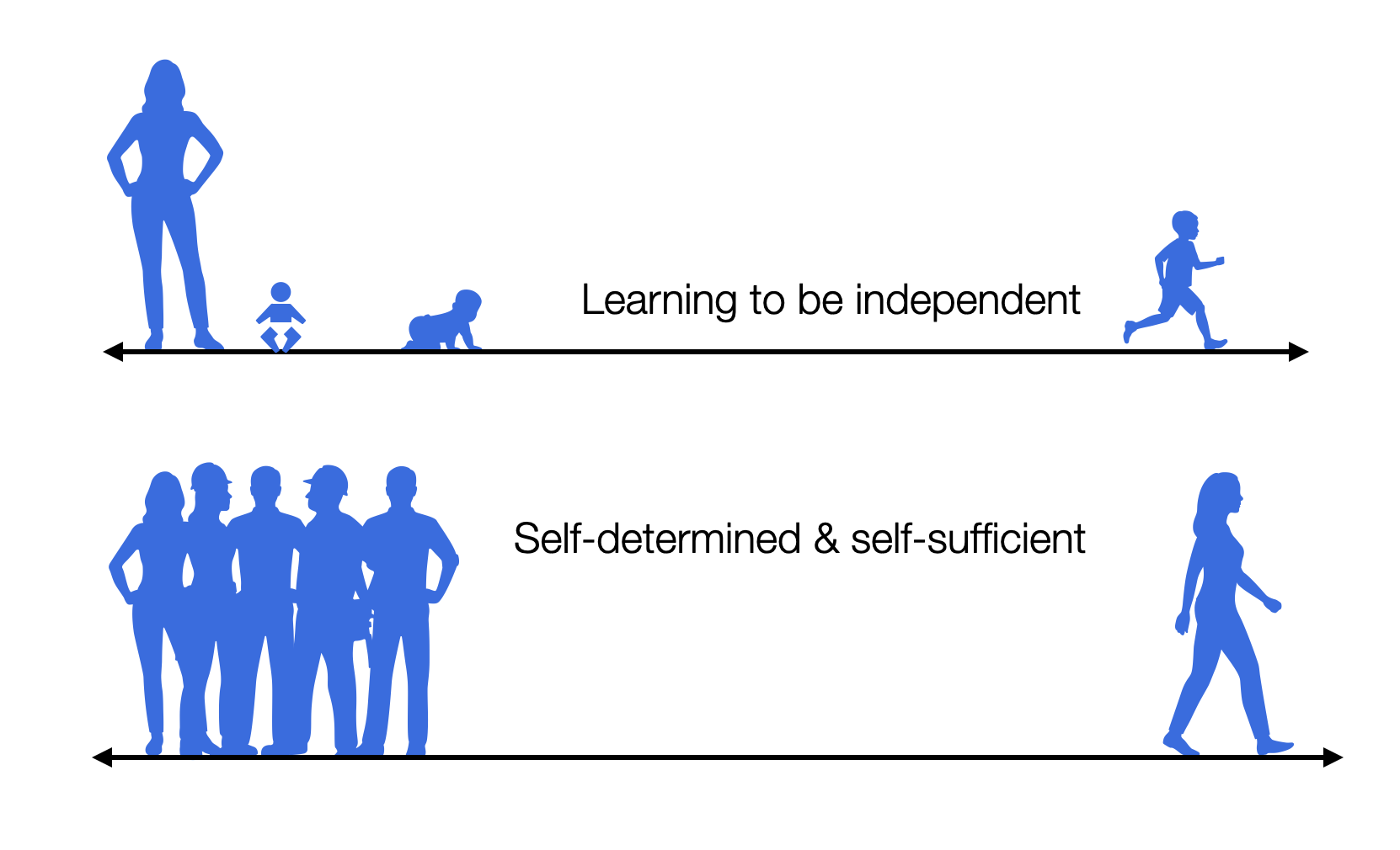 In the polyvagal perspective, safety is achieved through social interaction. We think this is fair, but it doesn't cover the whole picture. The diagram below shows how a child is completely dependent on its mother (or caregiver). Around the age of eight months, as he discovers the limits of symbiosis, anxiety begins to appear. He may have panic attacks (distress calls). He begins to walk between 12 and 18 months — a period of ambivalence between dependence and independence. At 24 months (the “terrible twos”), the child discovers the power to run away, explore the world around him, and return to his mother (sometimes turning around). When the caregiver encourages this freedom, the child gains confidence. He can be himself without losing the love of the group. Discovering his motor skills through games, fights, and intense activities is an important way to feel safe. It's the beginning of another sense of safety: I'm safe because I'm strong, smart, or skilled.
